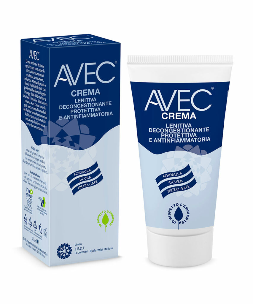 Sollievo e benessere a fior di pelle, subito dopo l’applicazione. Avec Crema è la crema lenitiva adatta alla pelle facilmente irritabile di adulti e bambini. La sua straordinaria efficacia è frutto di un mix di principi attivi come lo Zanthalene e l’Acido glicirretico, capaci di spegnere la sensazione di calore della cute sensibile determinata dagli sbalzi repentini di temperatura (caldo/freddo). Contiene anche Ossido di zinco micronizzato, noto per le sue proprietà antinfiammatorie, usato spesso contro ustioni, bruciature e dermatiti. Oltre all’immediato sollievo, Avec Crema offre anche un’efficace protezione, avvolgendo la pelle con una barriera che la difende dagli stimoli irritativi.