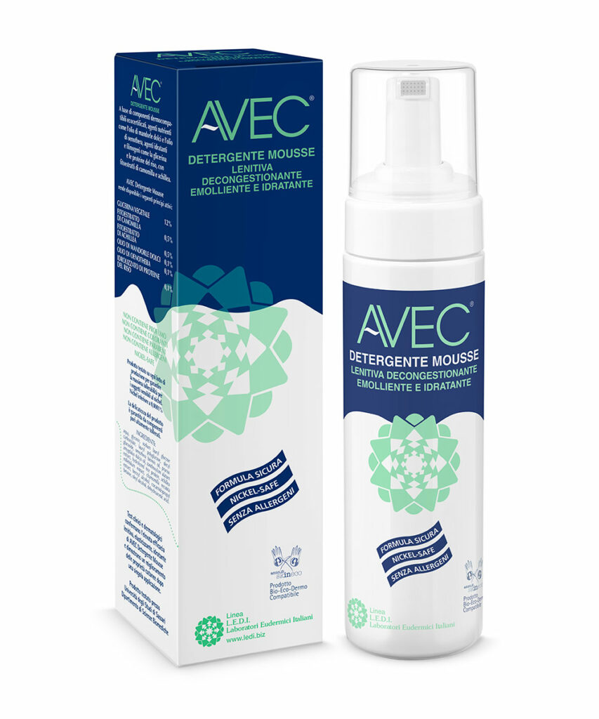 Avec Detergente Mousse è uno dei prodotti della linea Pelli Secche, Molto Secche e Atopiche, studiata in modo specifico per prendersi cura con delicatezza di pelli secche, sensibili e facilmente irritabili, che hanno bisogno di un’attenzione in più. Il suo utilizzo prepara all’applicazione di Avec Emulsione Fluida, indicata per il trattamento di zone cutanee estese in alternativa all’uso di cortisonici, e di Avec Crema, crema lenitiva che spegne le irritazioni ed è in grado di formare una barriera protettiva sulla cute come scudo contro ulteriori stimoli irritativi. Per un aiuto dall’interno, ai prodotti dermocosmetici si affianca anche un integratore: Avec Integratore con attivi che favoriscono il mantenimento dei tessuti connettivi e di una pelle sana.