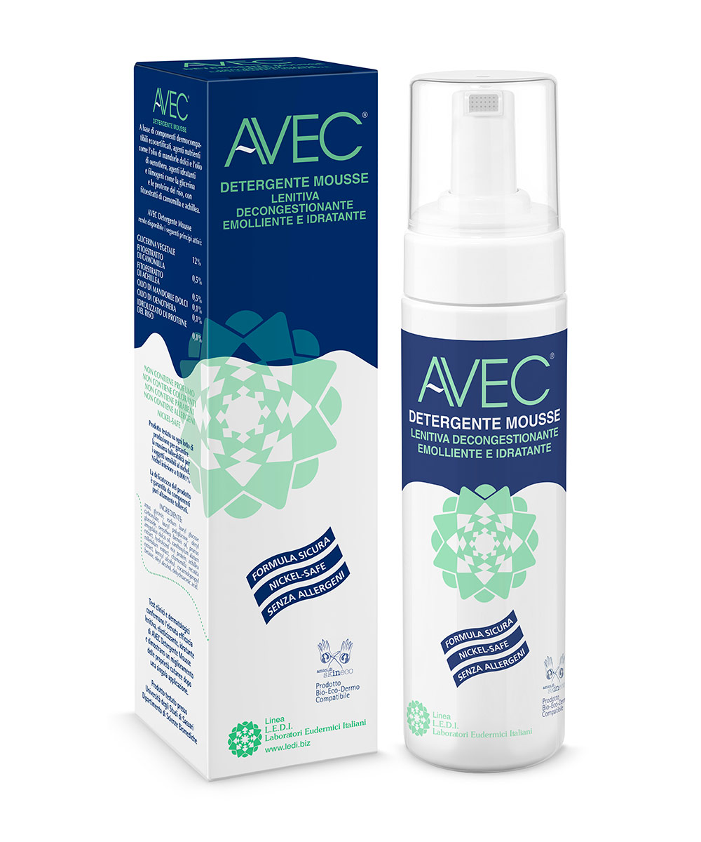 Avec Detergente Mousse è a base di componenti dermocompatibili, puri, altamente tollerati, ecocertificati: