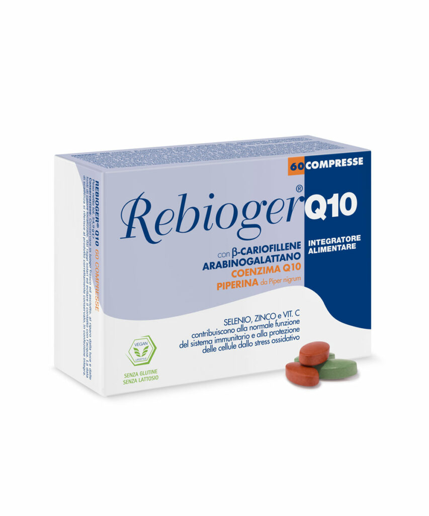 Rebioger Q10 è un integratore alimentare formulato con attivi di origine vegetale, vitamine, minerali quali: